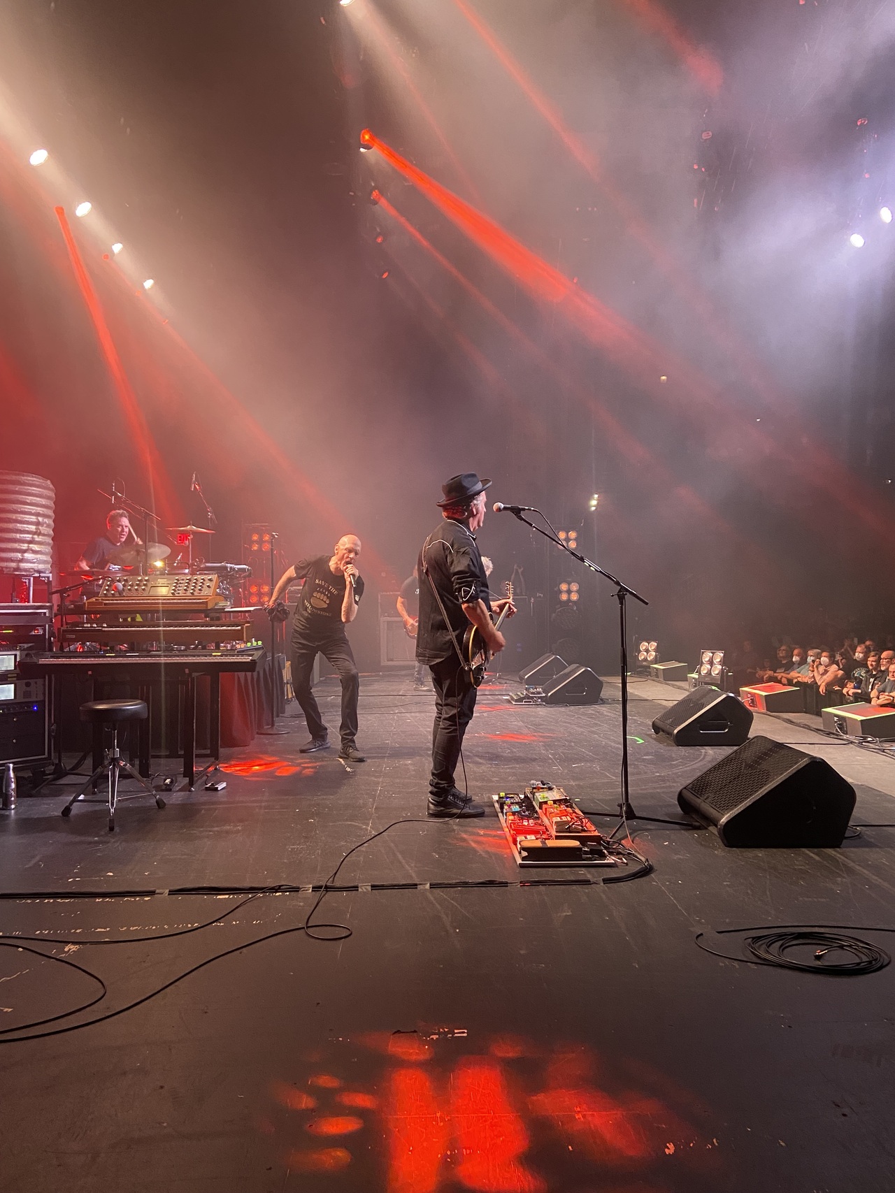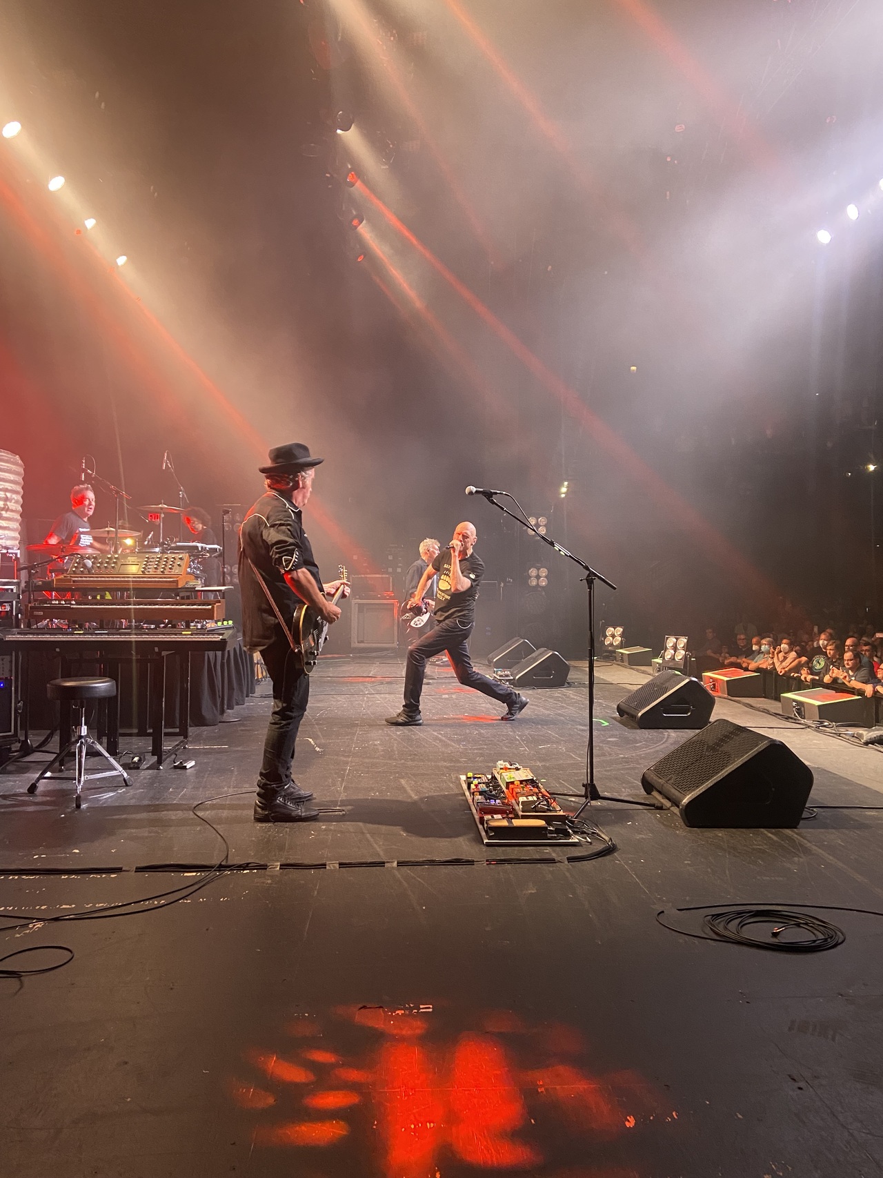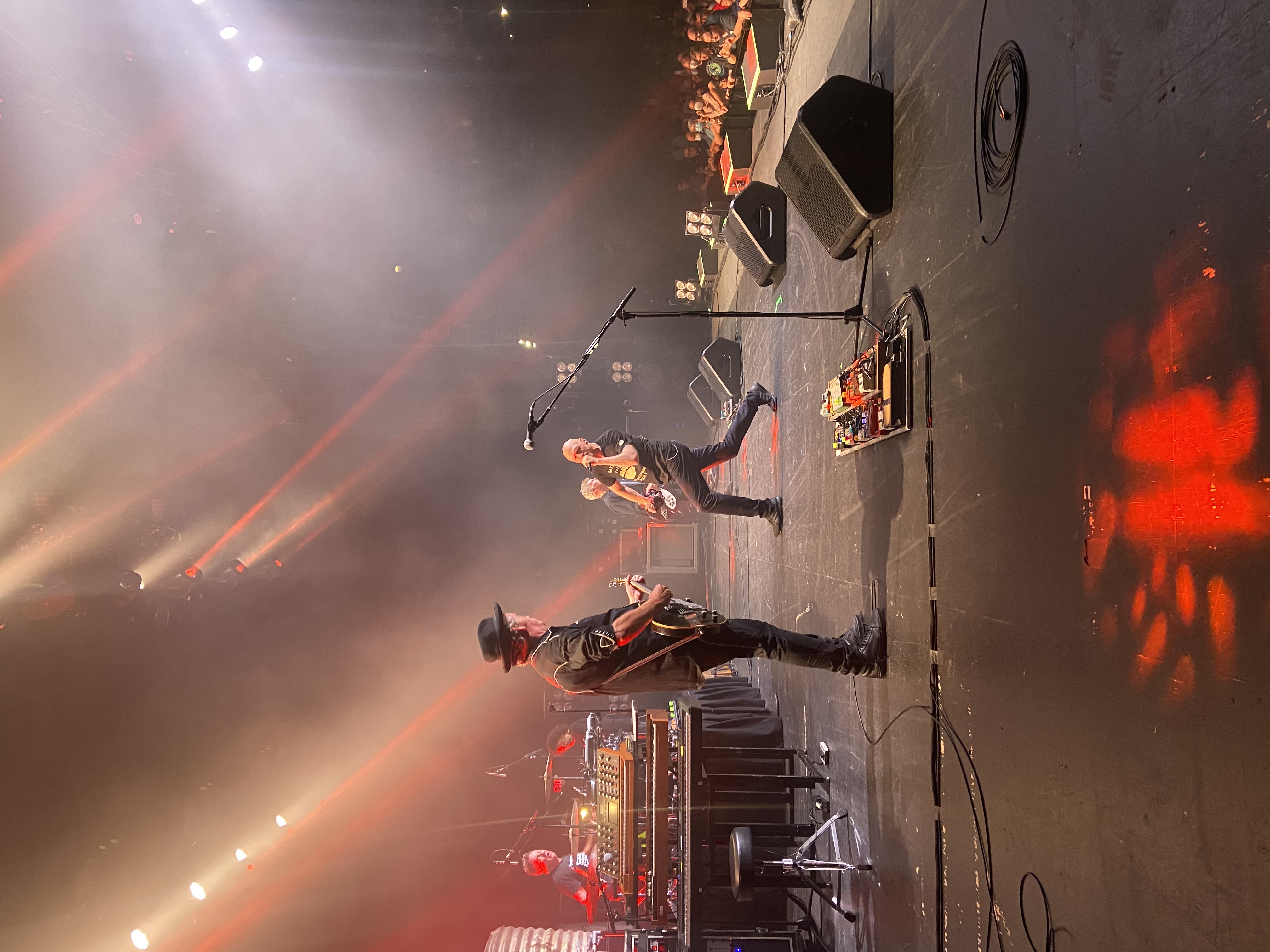 And then the shows. Watching the Oils come alive on every stage. Every single performance wrung dry, nothing left on the park, sweating and steaming and spitting their way through over two hours of masterful composition and delivery, the fierce energy marshalled by their unabating respect for their audience. Martin and Jim’s completely opposing but profoundly harmonious guitar styles and their clean, perfect tones placed at the front of the mix by Colin Ellis, the front-of-house legend. Rob’s other-worldly energy, stamina and charisma on drums and vocals and Peter’s ‘born-to-be-a-front-man’ performances and fearless onstage commentary about the state of US democracy, the Ukrainian war, the brutal colonial legacies of Belgium and England. The shows were lit by Alex Saad, the best and most talented in the business and our in-ear-monitors deftly balanced by Kenno. This wasn’t just a legendary band, but a legendary crew with dozens of years’ experience between them and as many stories, the best ones beginning with ‘I’m not going to tell you who this is actually about’ and ending in complete disclosure about everything and everyone involved. Which will forever remain in the tour cone.
